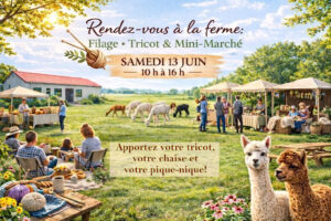 *** Réservez votre samedi 13 juin pour la Journée mondiale du tricot en public : un rendez-vous de tricot et aussi de filage, jumelé à un mini-marché de fibres, laines et autres découvertes locales et artisanales… Le tout en plein air, à la ferme!
