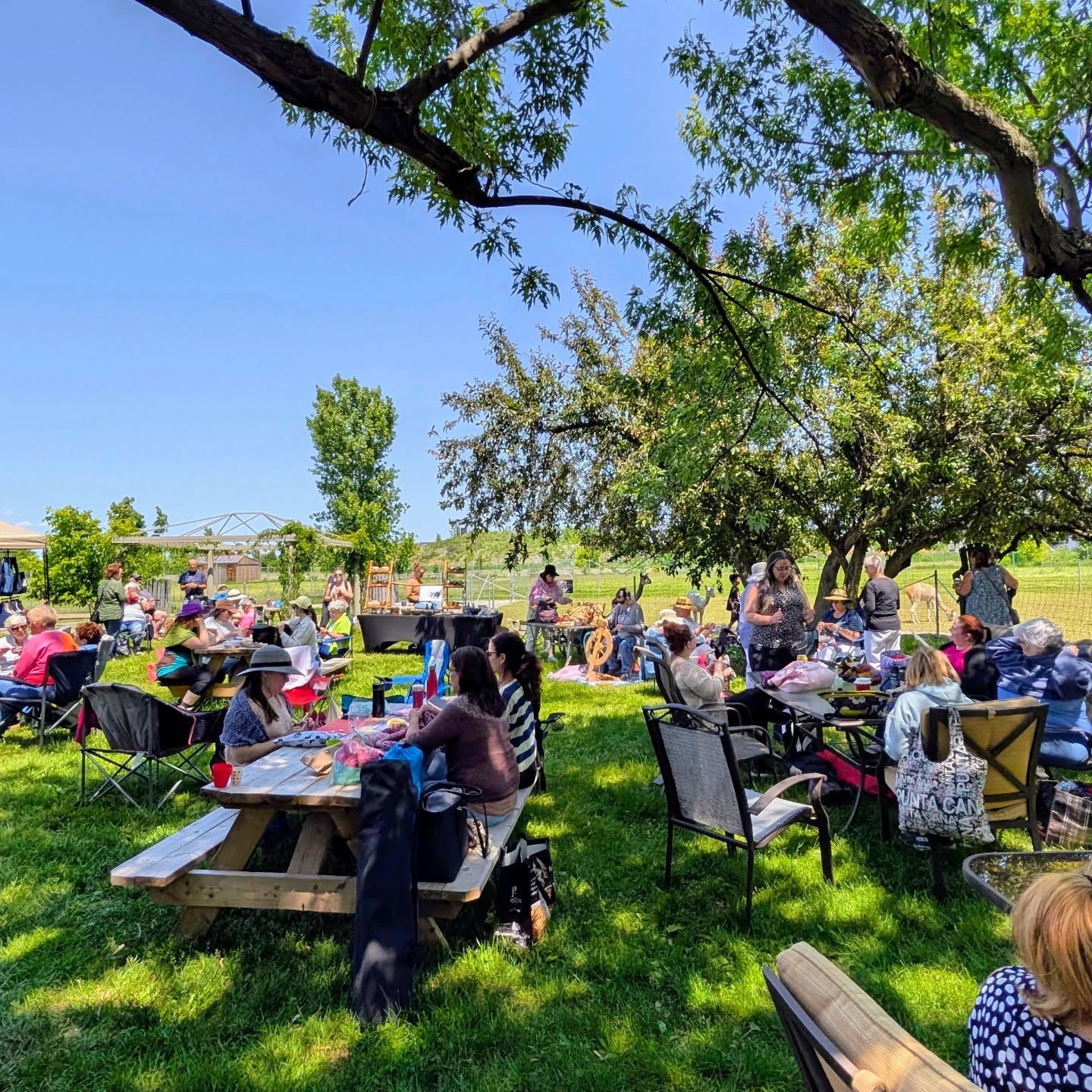 Au programme: filage, tricot et mini-marché en plein air, mettant à l’honneur la laine et les fibres naturelles, les arts textiles et les produits du terroir! Il y aura aussi de l’animation autour des alpagas et de leurs toisons, possiblement un atelier de préparation de la fibre et d’initiation au filage… laissez-nous savoir si vous êtes intéressé.e.s!